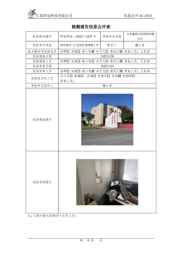 檢測報告公示