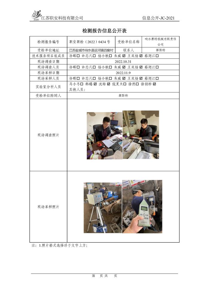 檢測報告公示