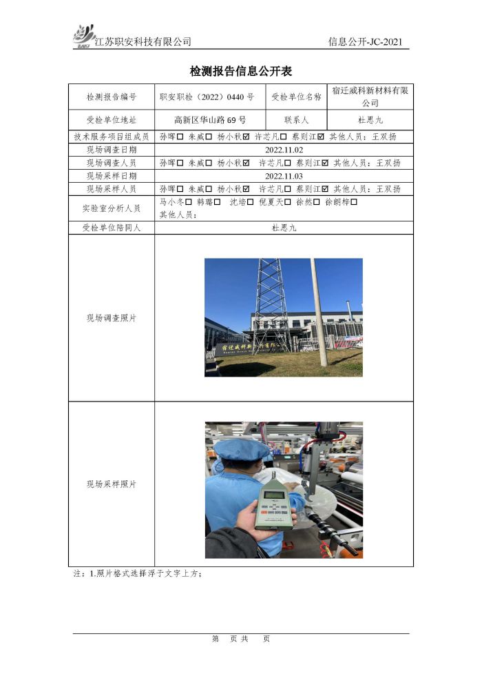檢測報告公示