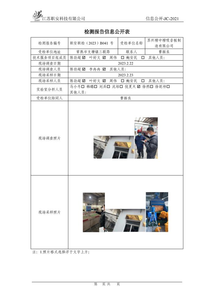 檢測報告公示