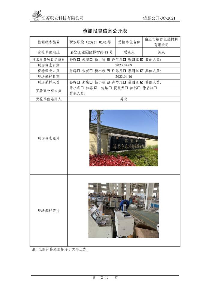 檢測報告公示