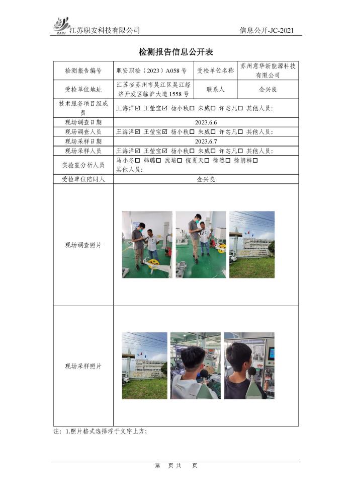 檢測報告公示