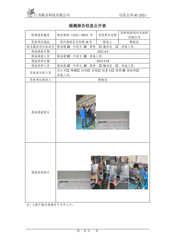 檢測報告公示