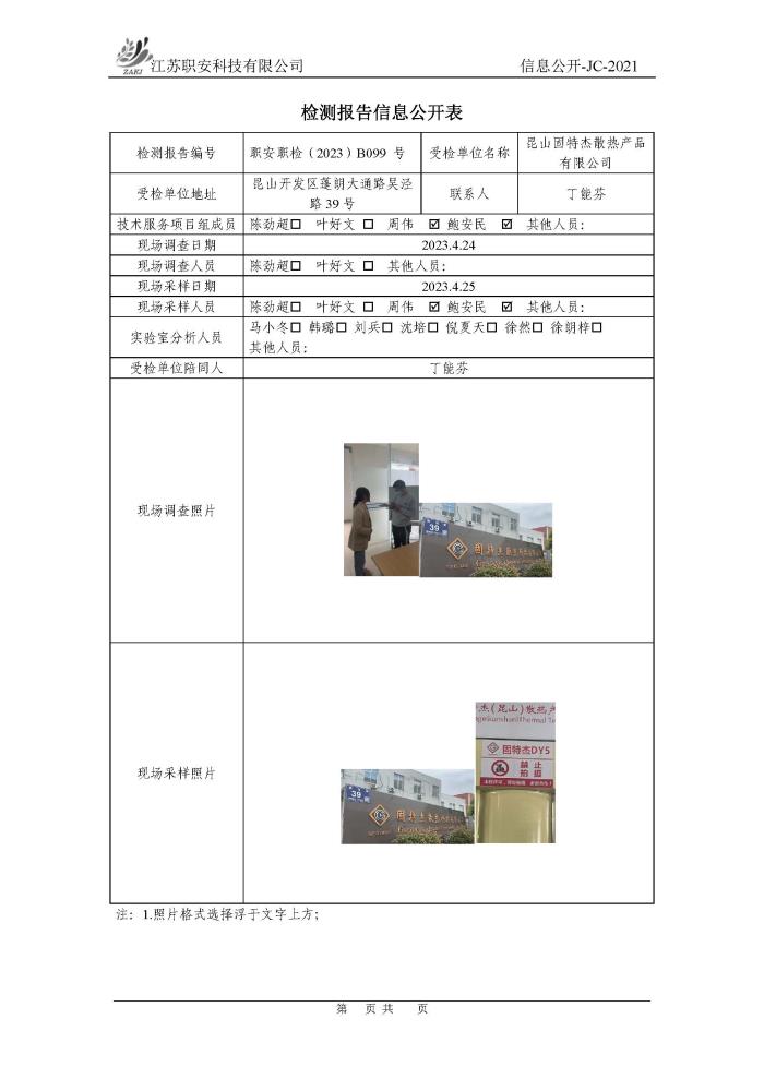 檢測報告公示