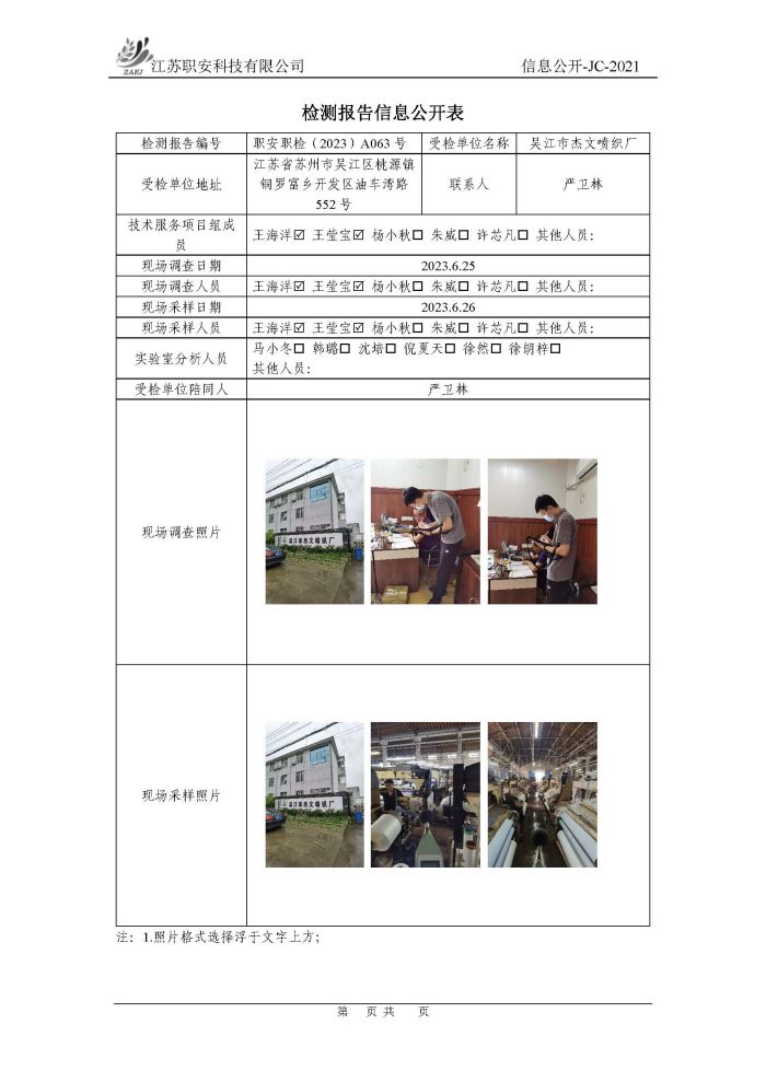 檢測報告公示