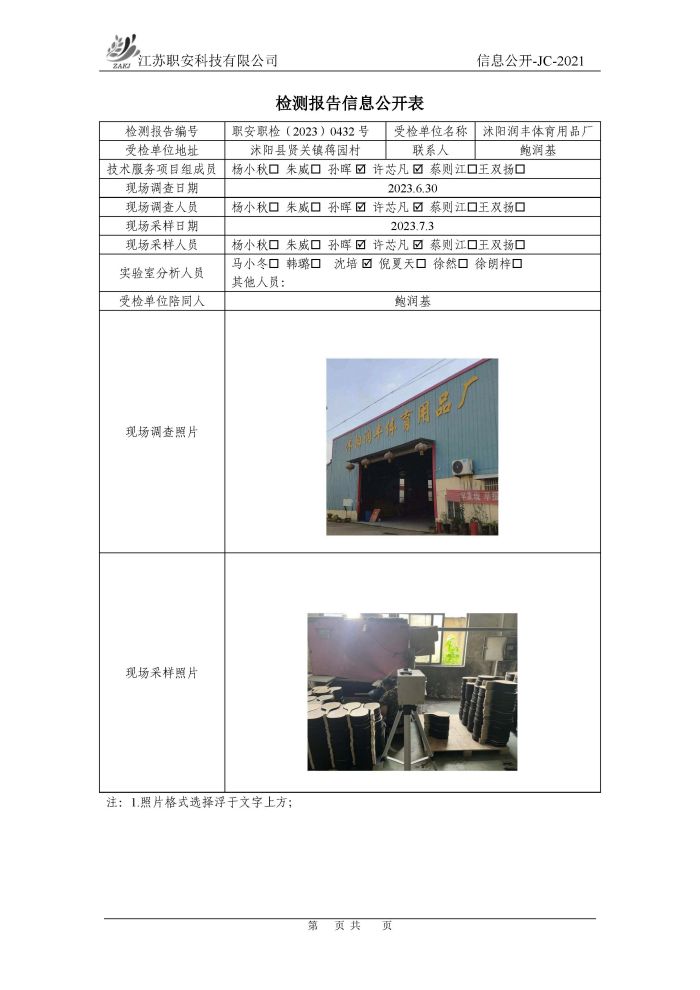 檢測報告公示