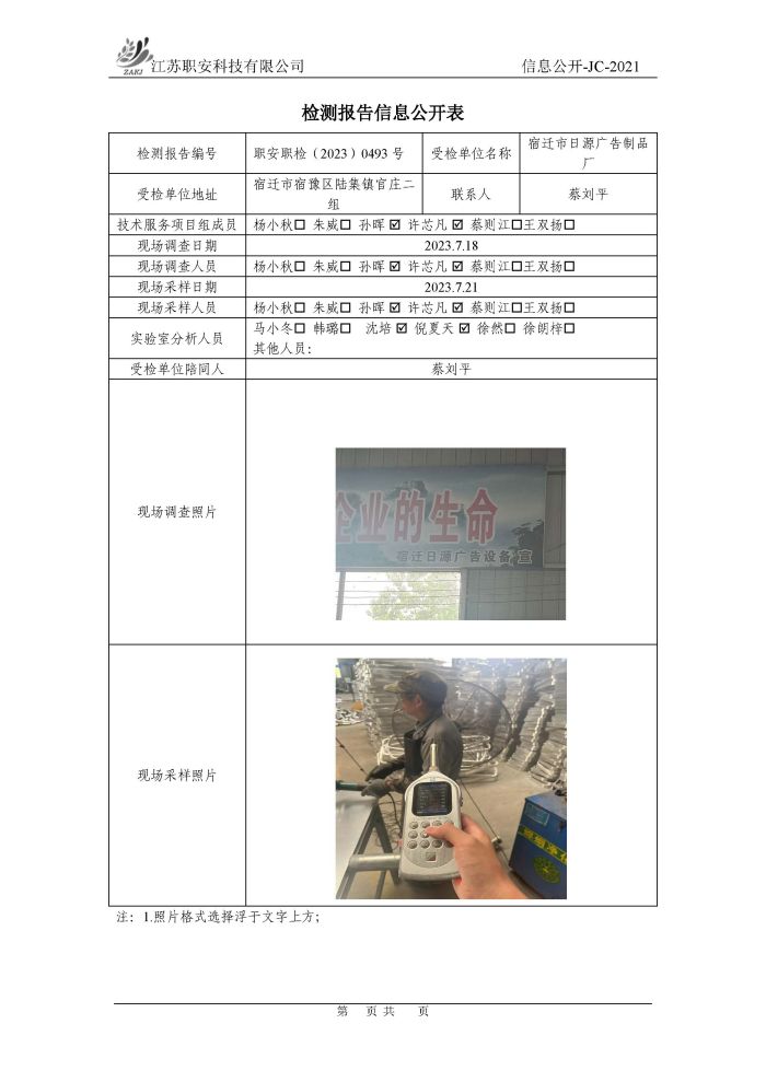 檢測報告公示