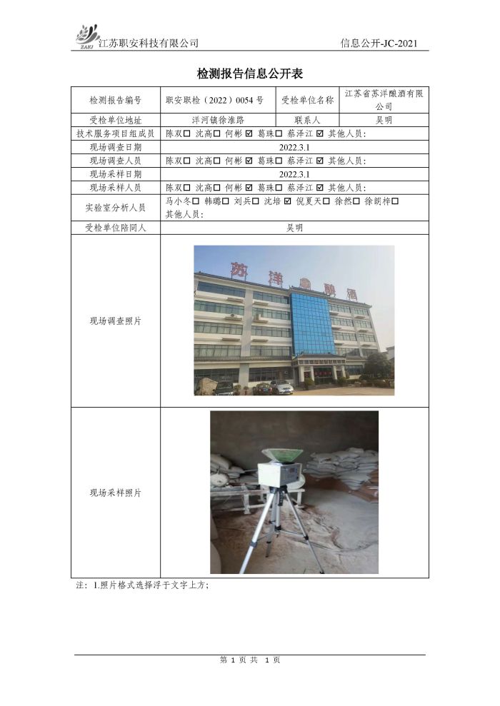 檢測報告公示