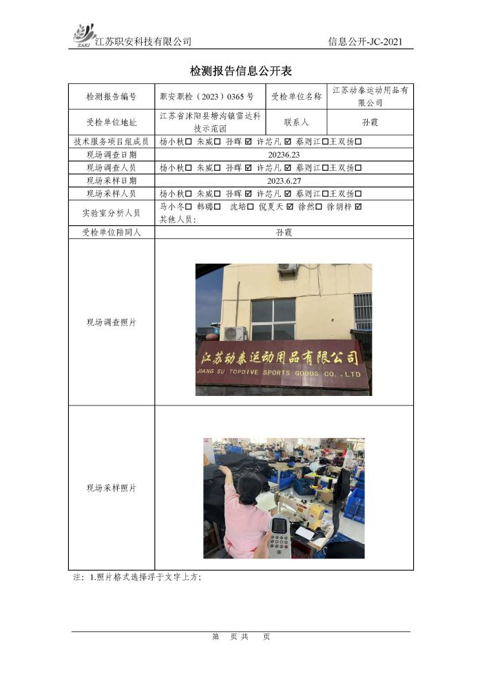 檢測報告公示