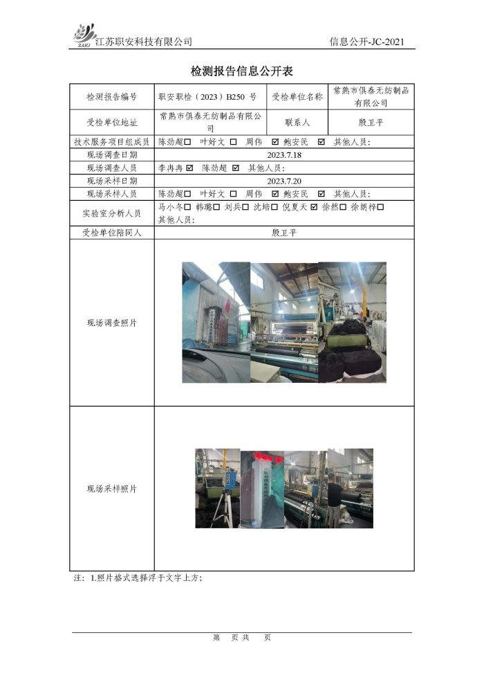 檢測報告公示
