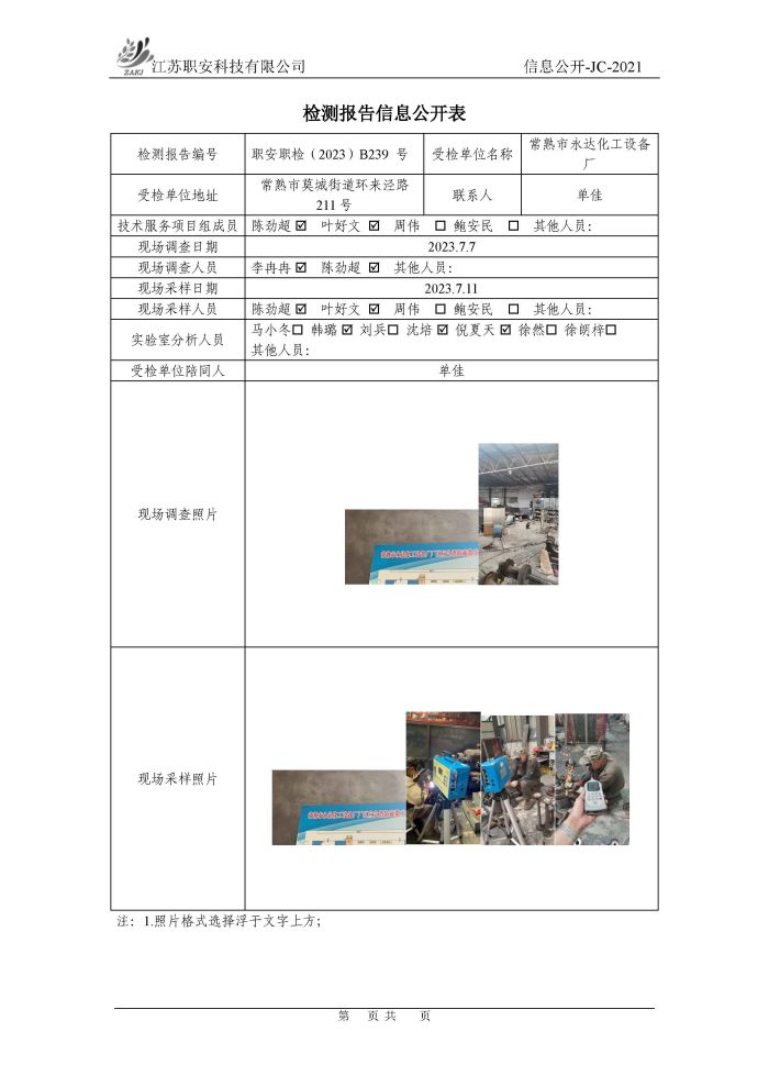 檢測報告公示