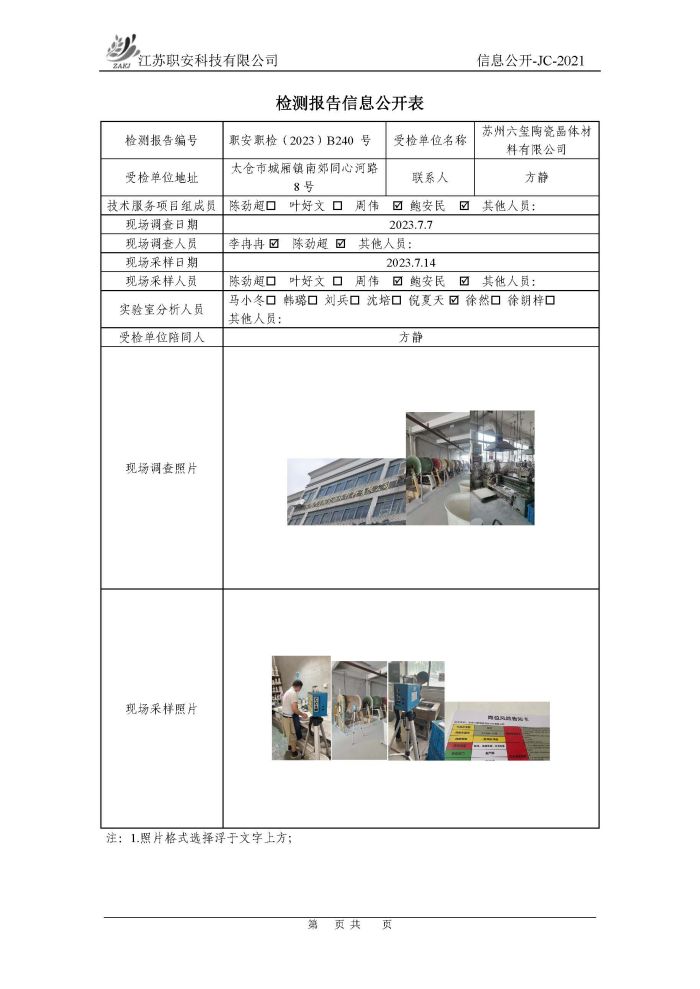 檢測報告公示