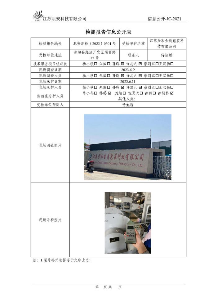 檢測報告公示