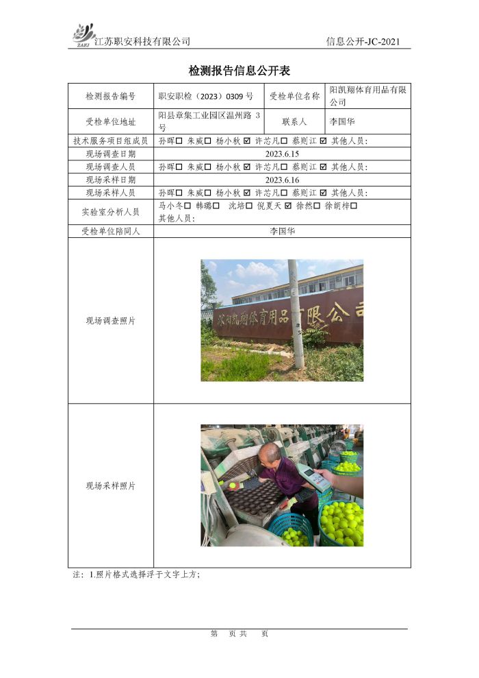 檢測報告公示