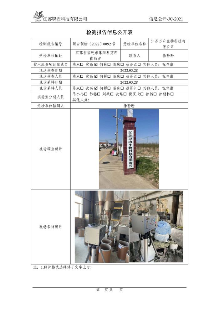 檢測報告公示
