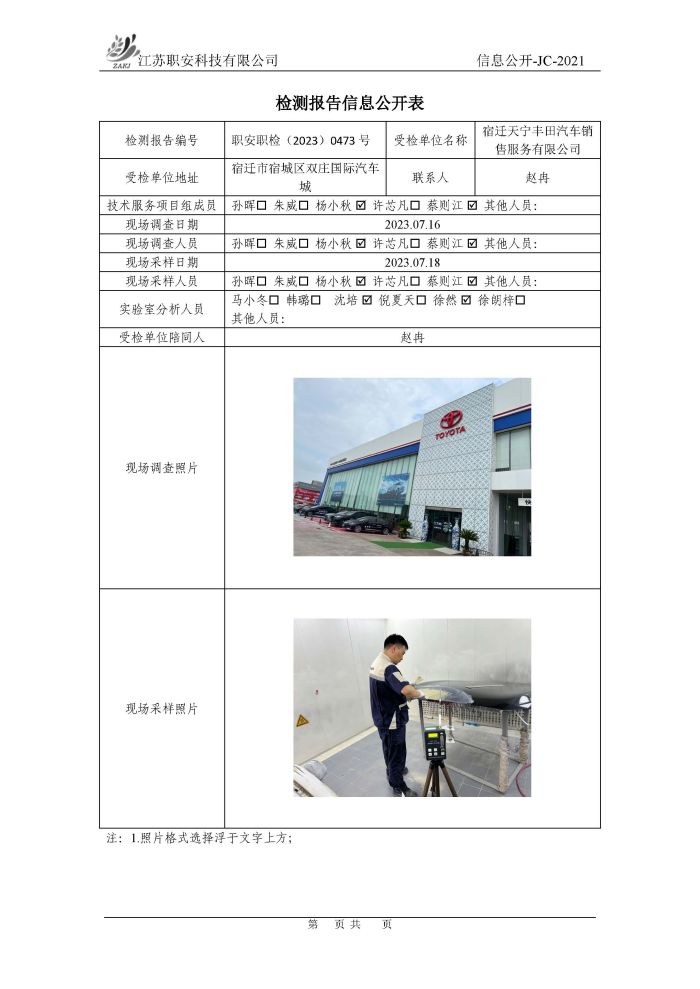 檢測報告公示
