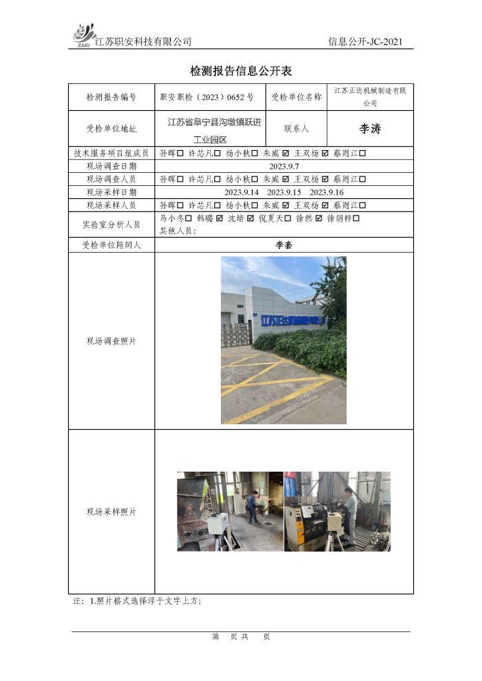 檢測報告公示