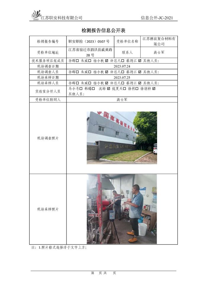檢測報告公示