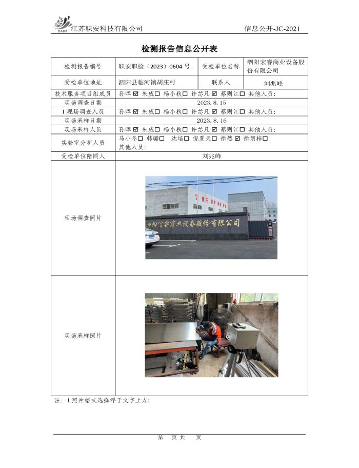 檢測報告公示