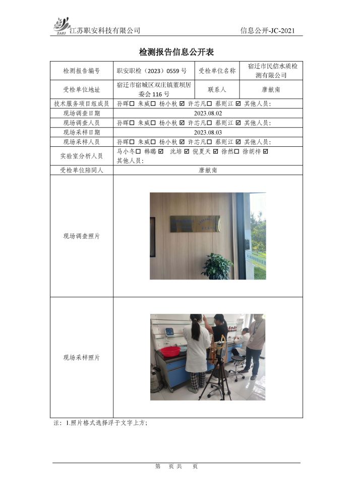 檢測報告公示
