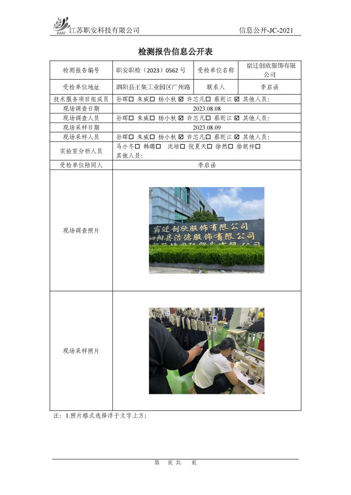 檢測報告公示