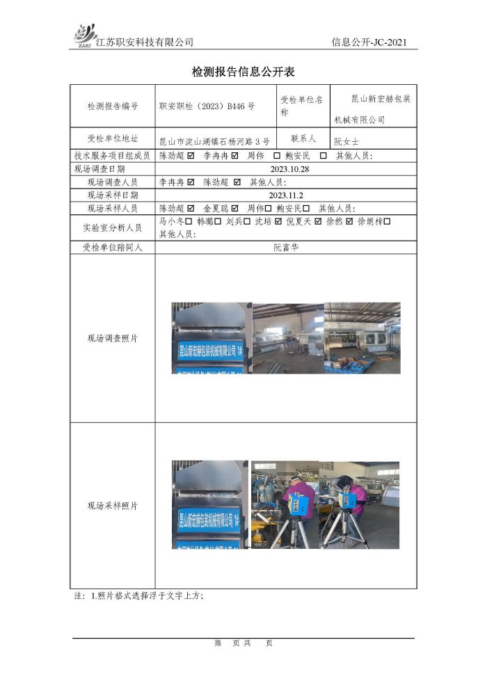 檢測報告公示