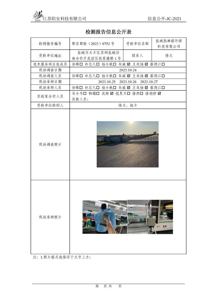 檢測報告公示