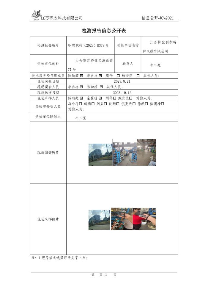 檢測報告公示