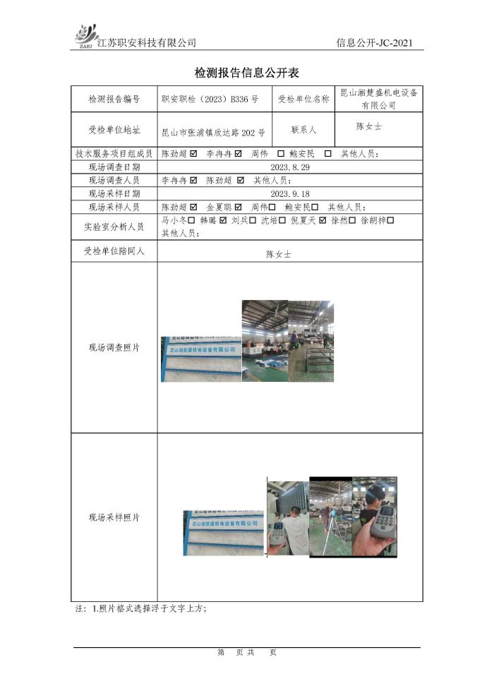 檢測報告公示