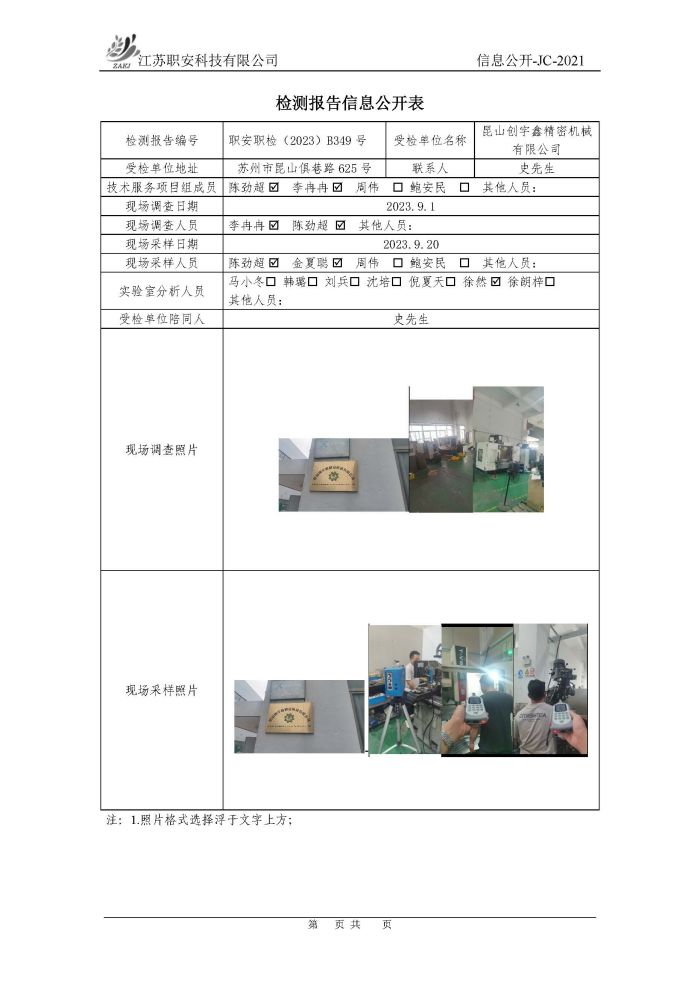檢測報告公示