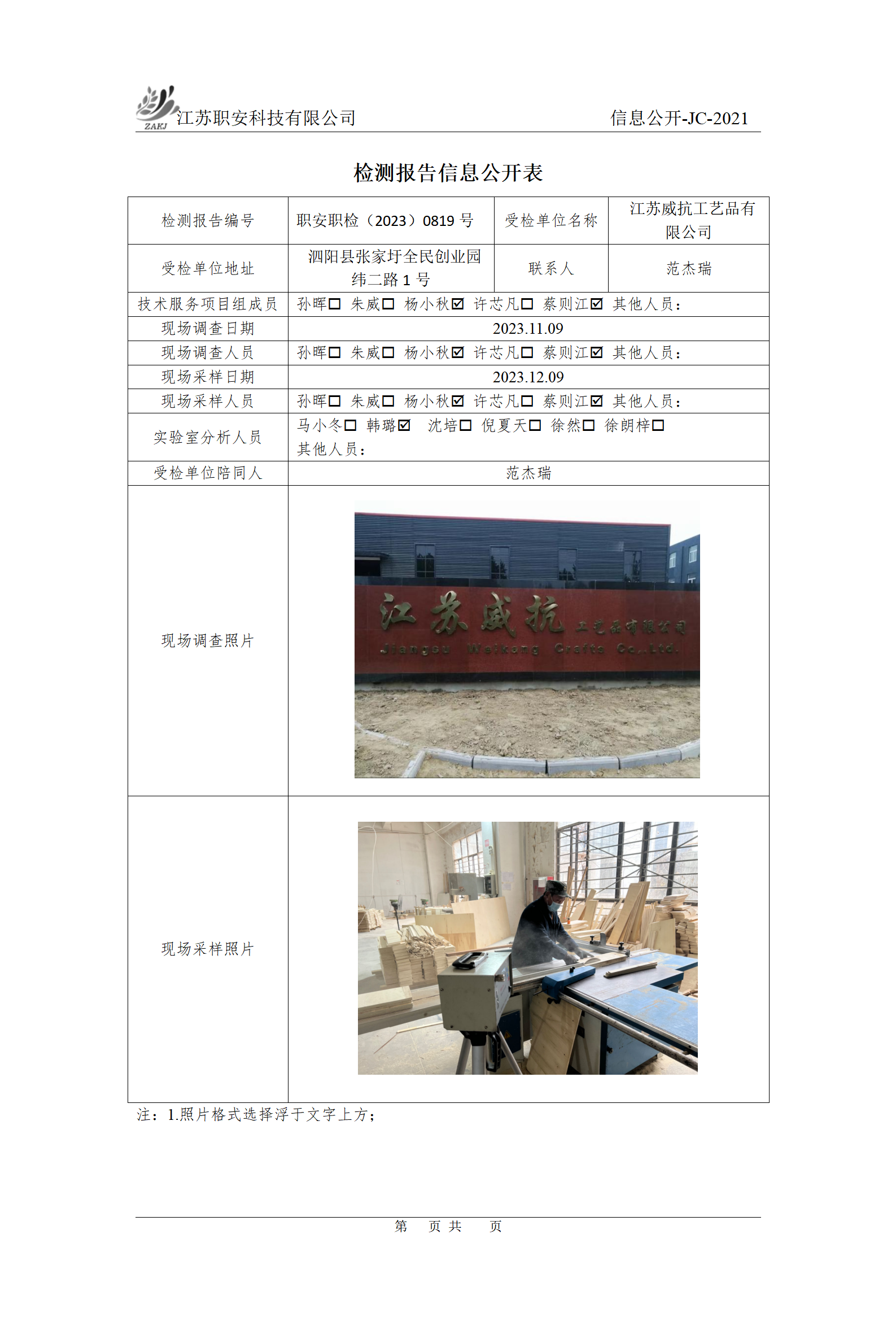 檢測報告公示
