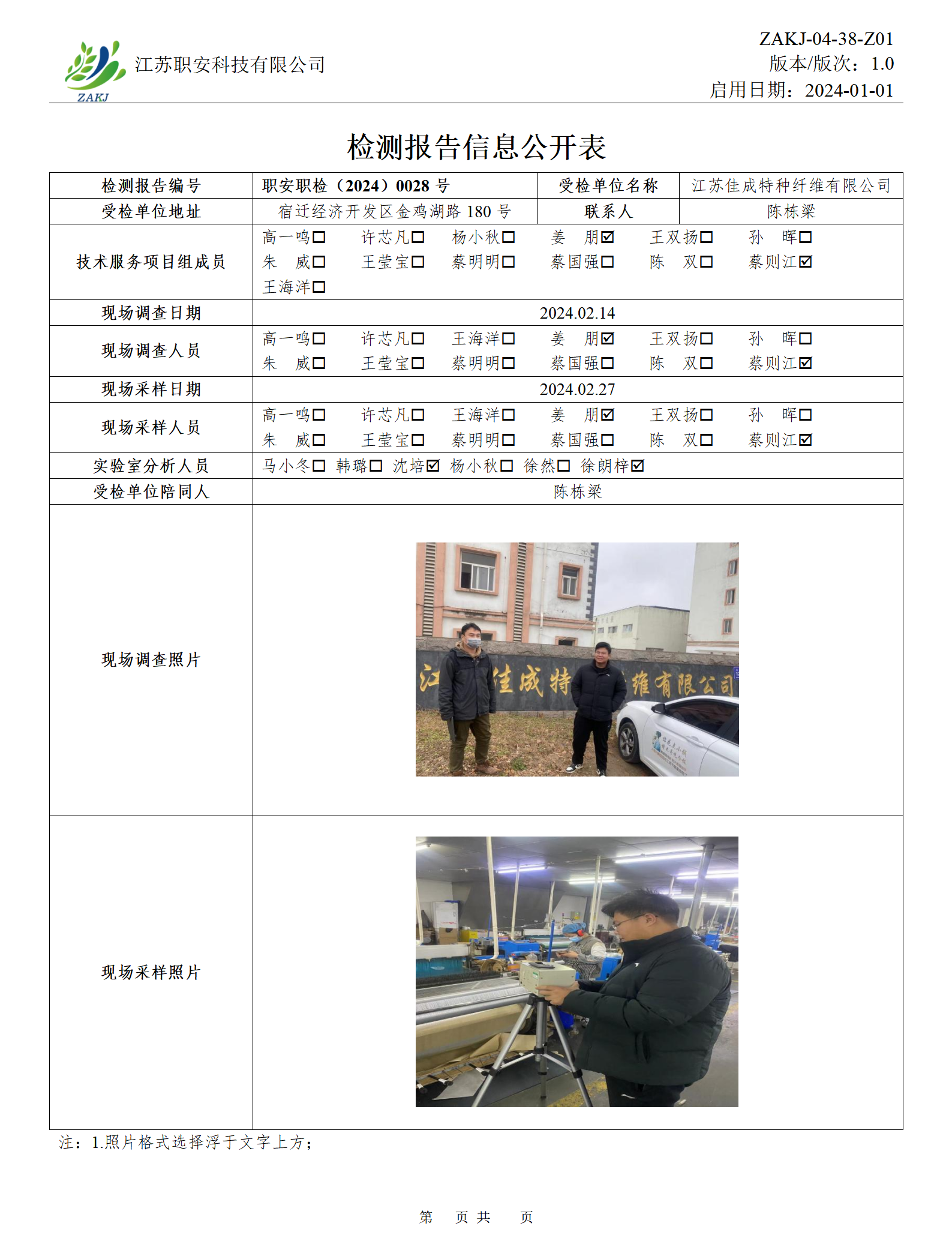 檢測報告公示