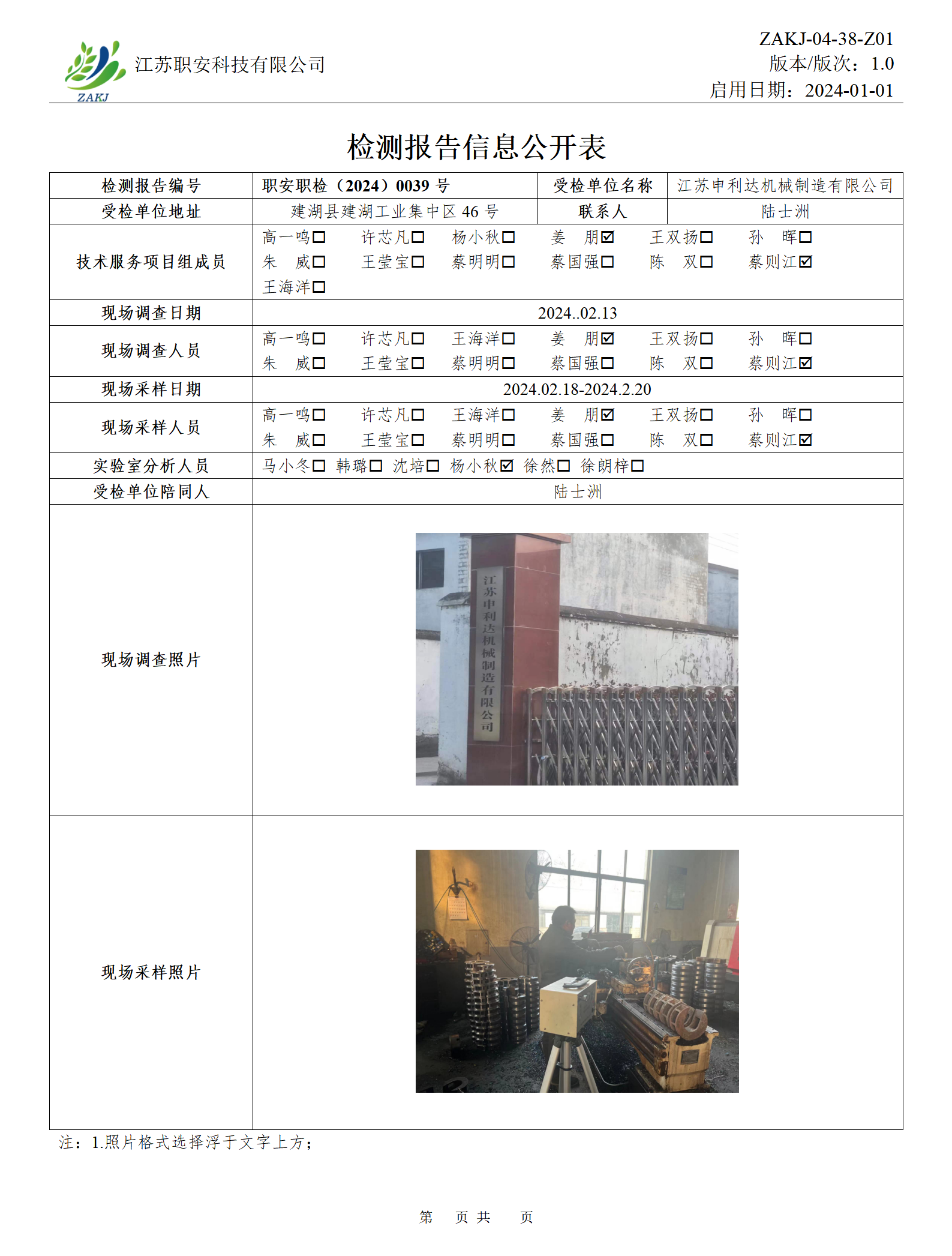 檢測報告公示