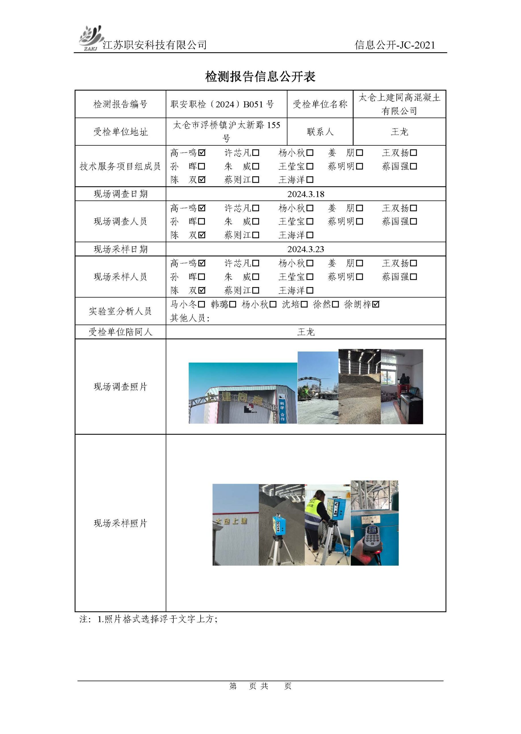 檢測報告公示