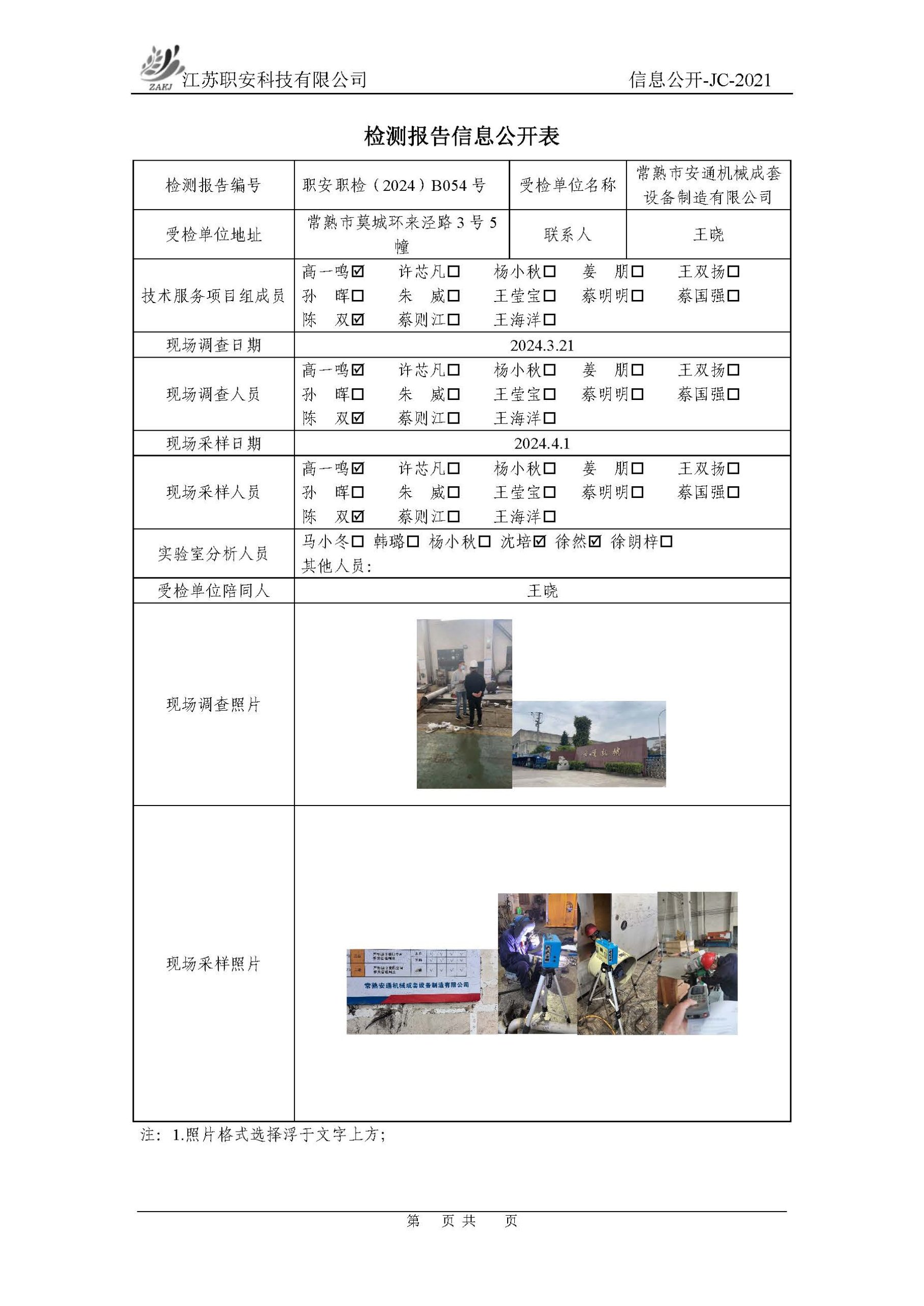 檢測報告公示