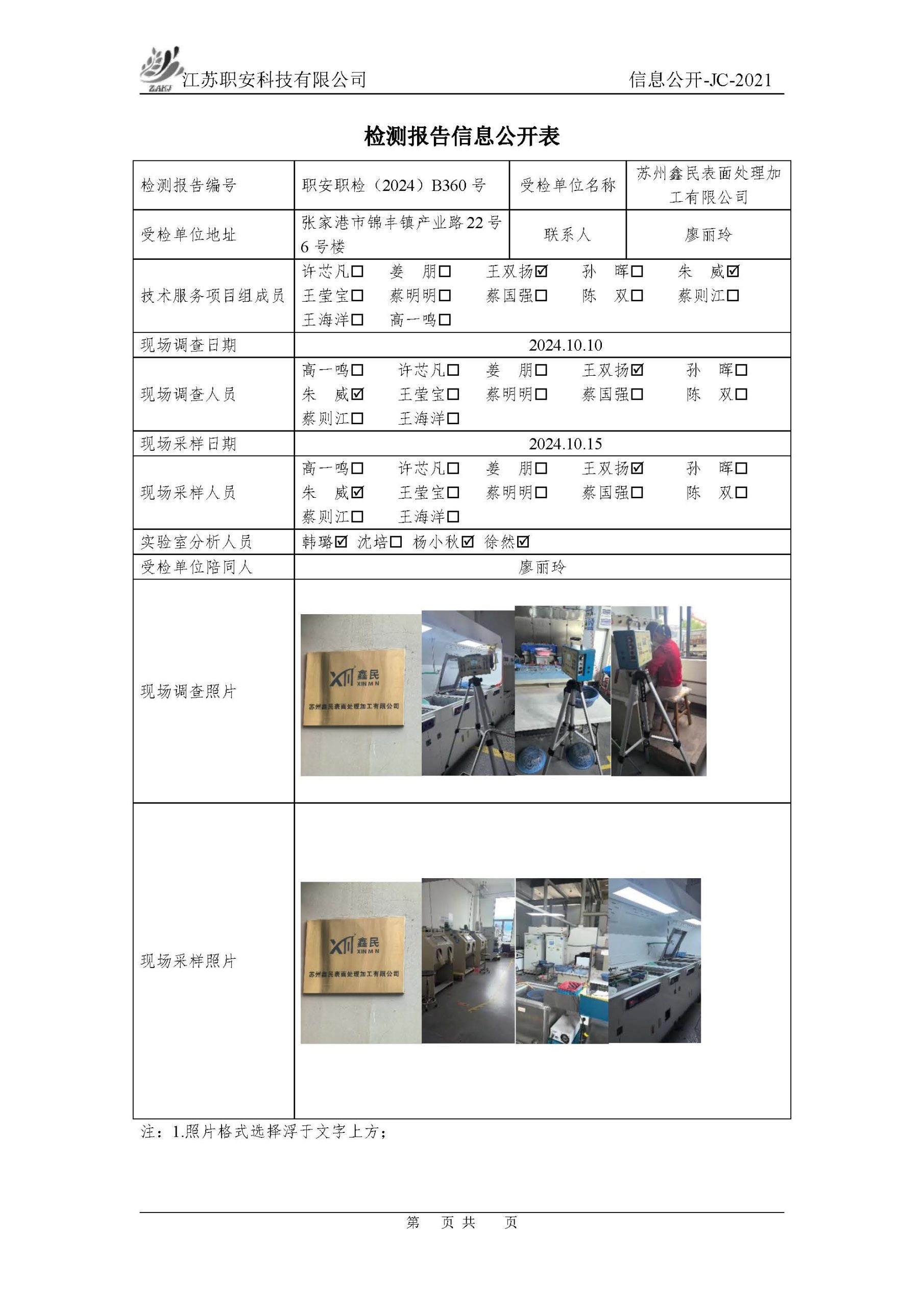 檢測報告公示