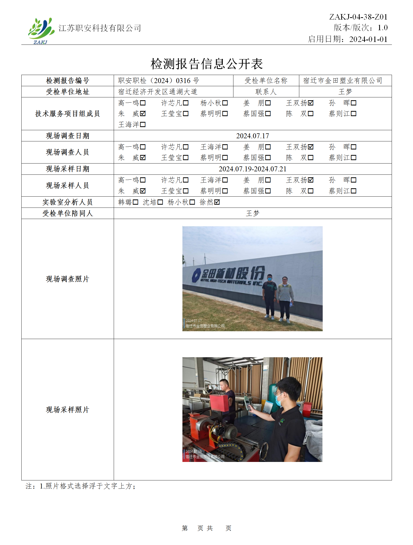 檢測報告公示