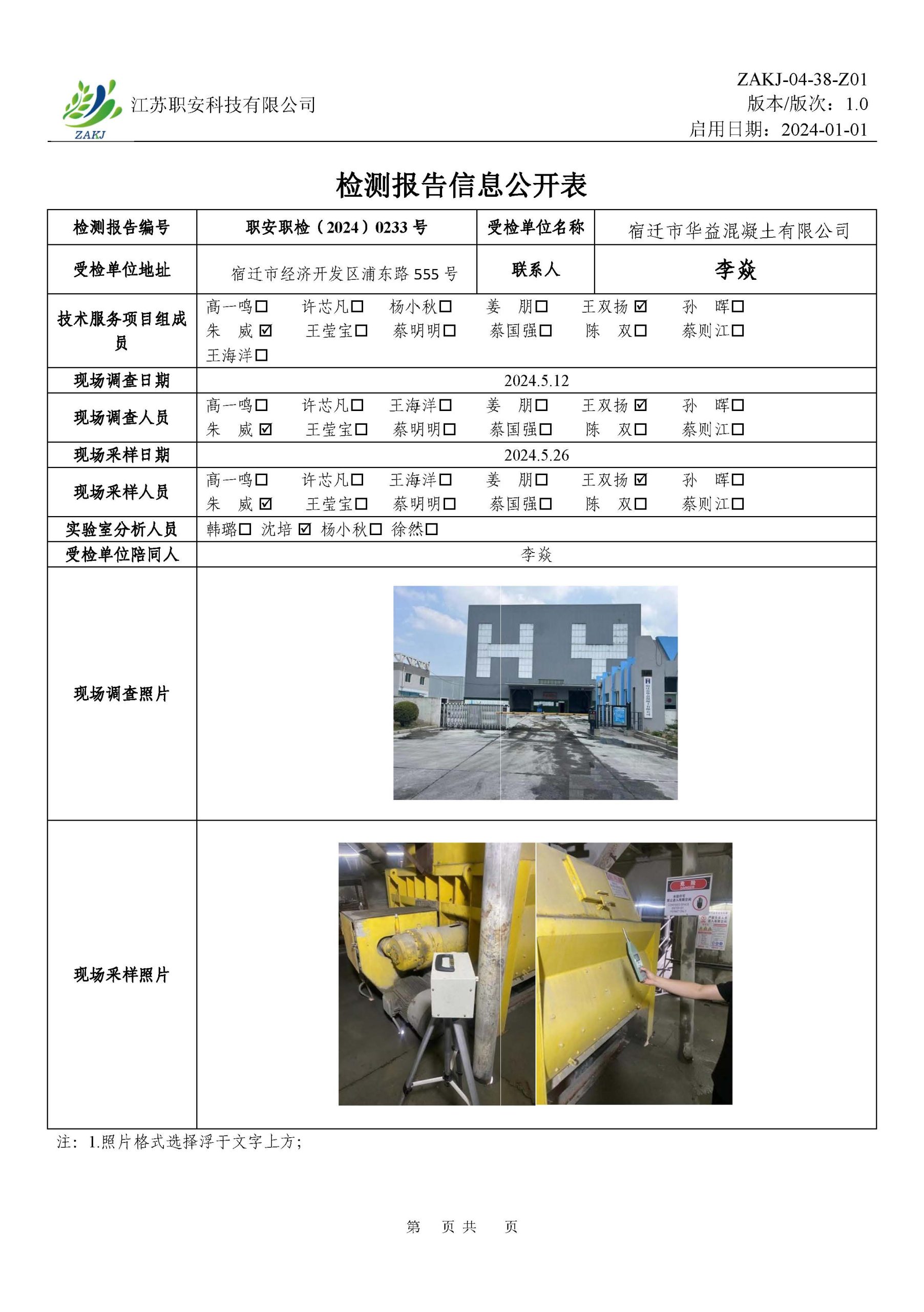 檢測報告公示