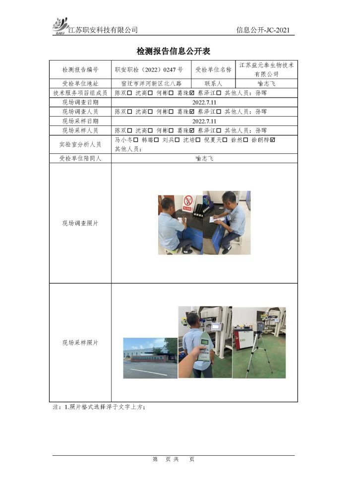 檢測報告公示
