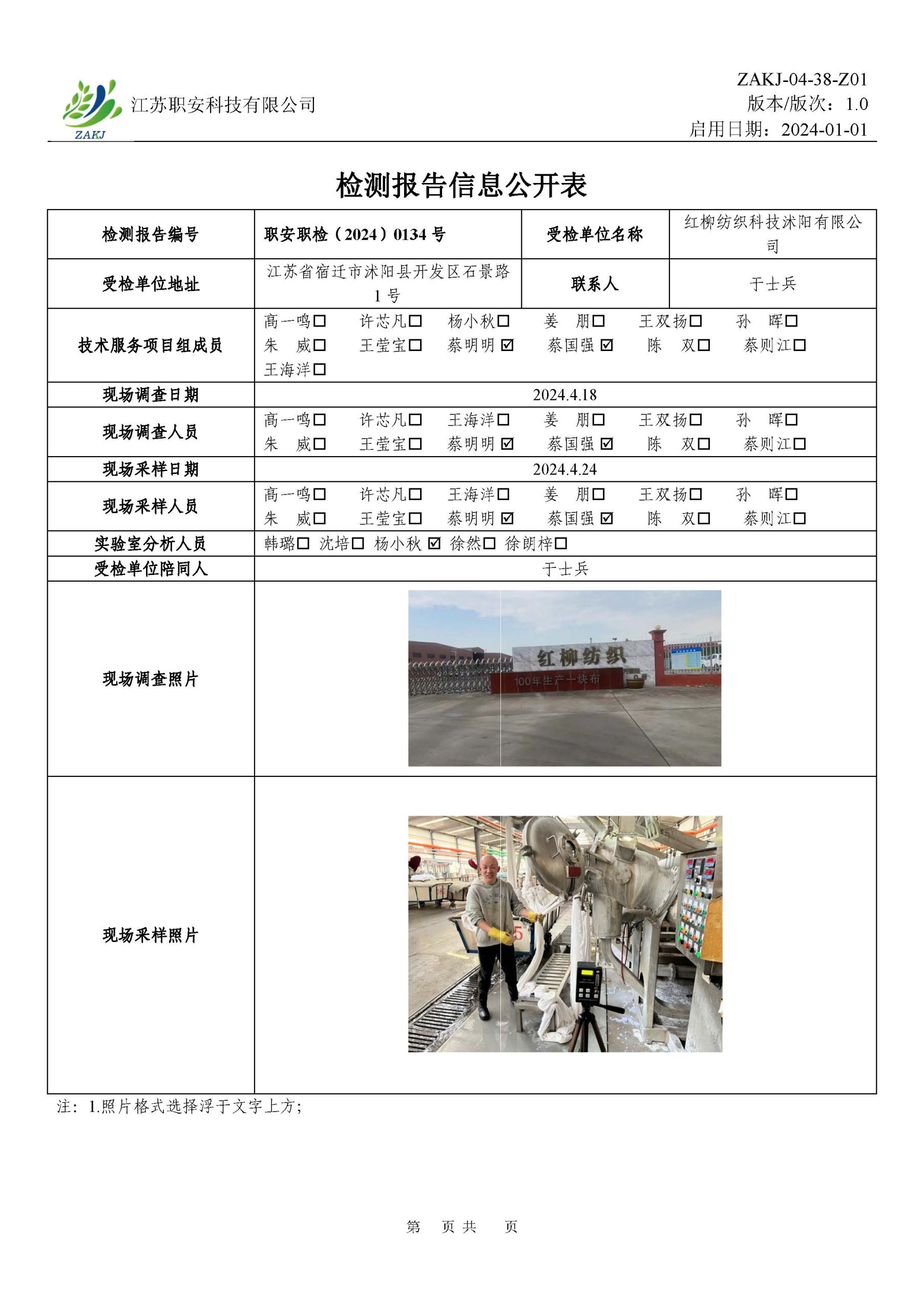 檢測報告公示