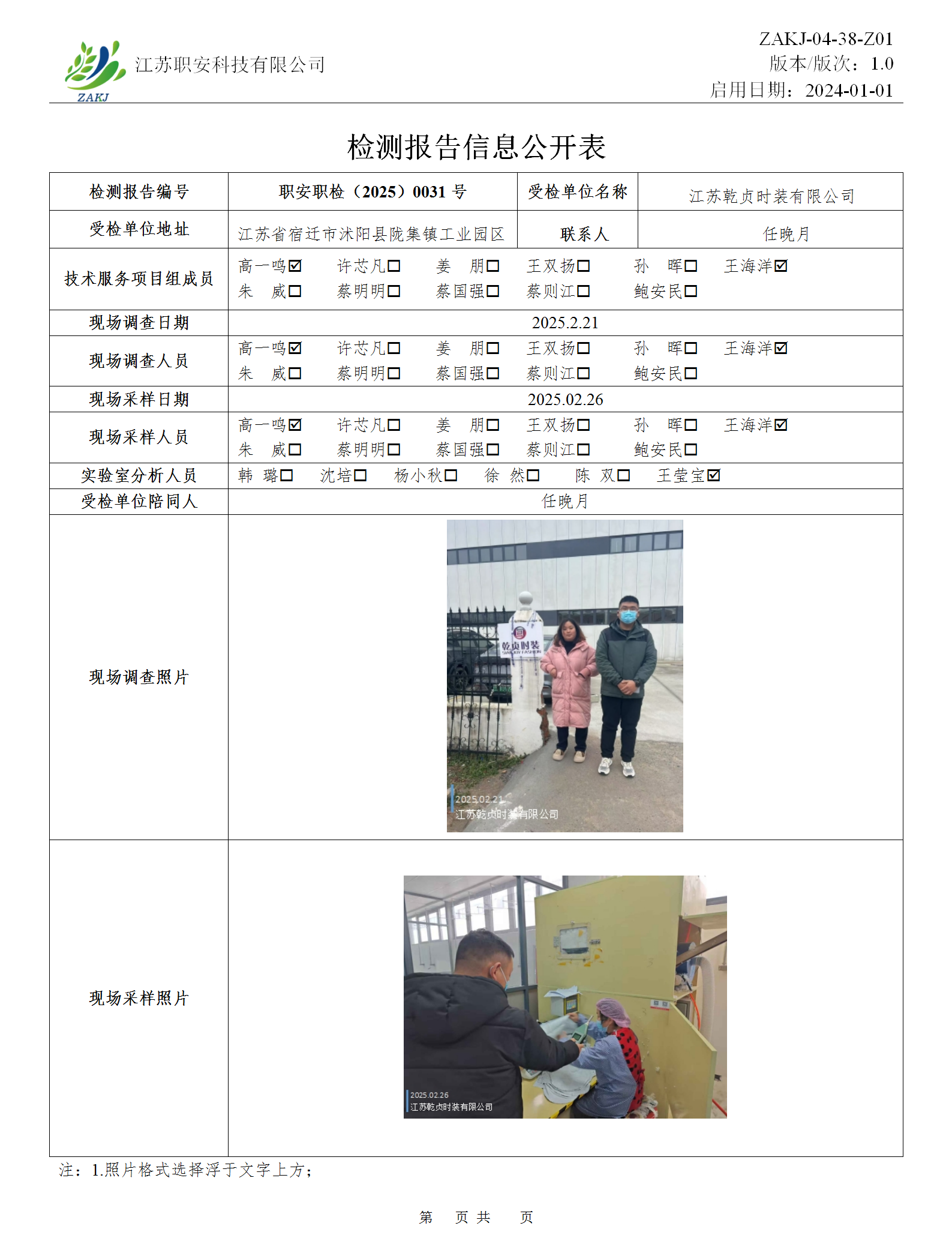 檢測報告公示