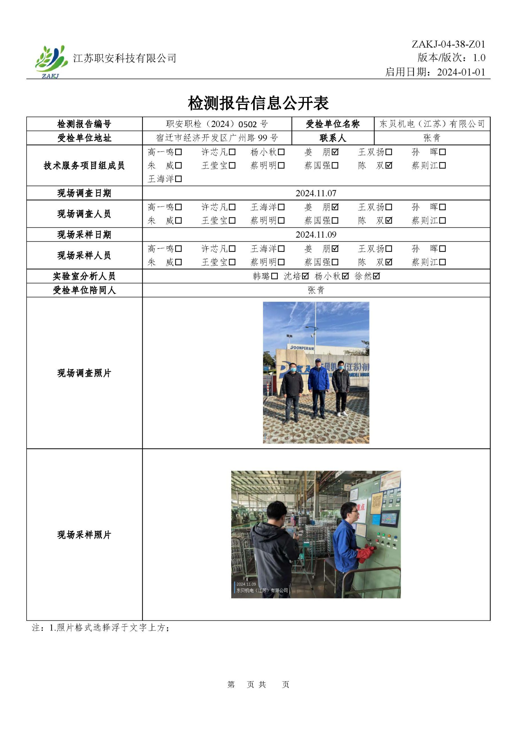 檢測報告公示