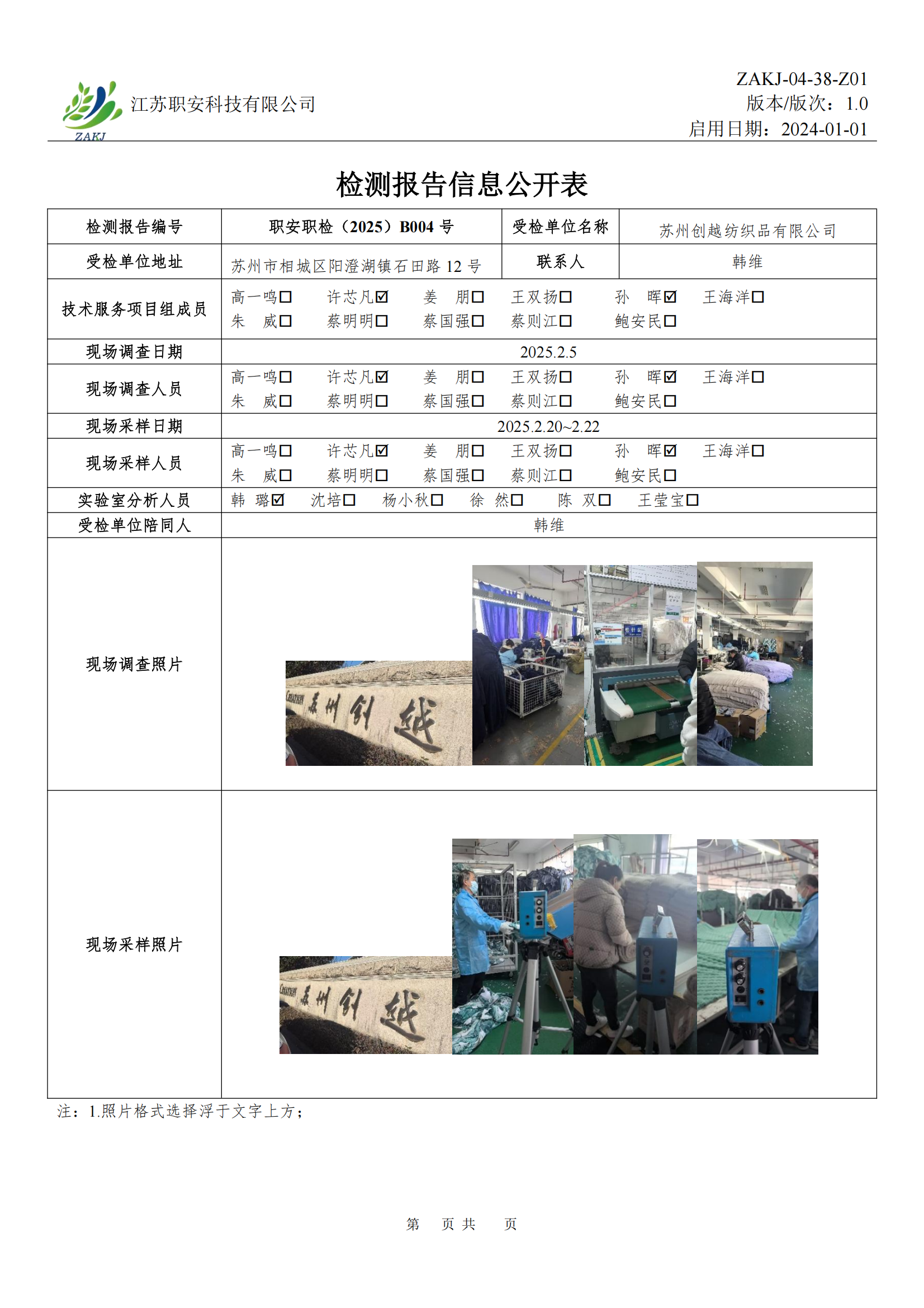 檢測報告公示