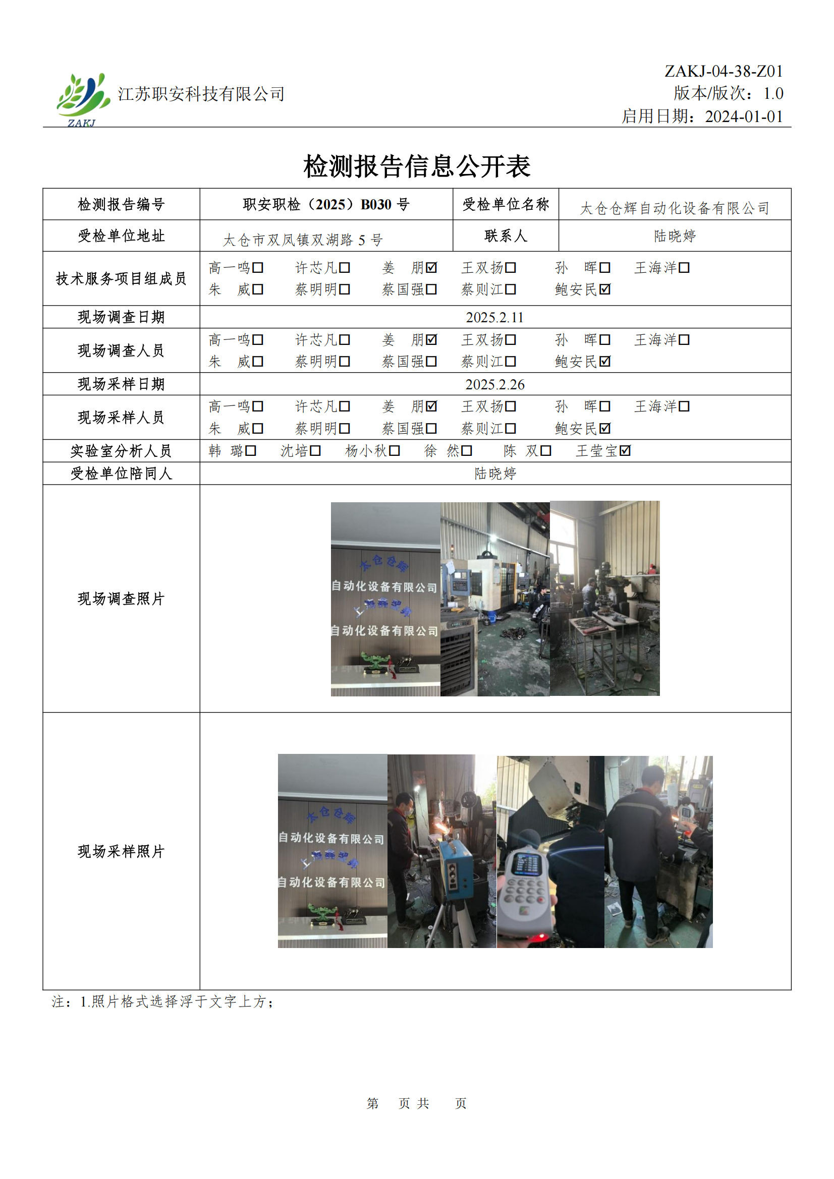 檢測報告公示