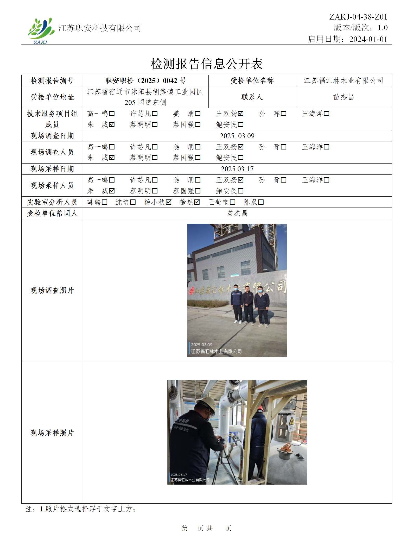 檢測報告公示