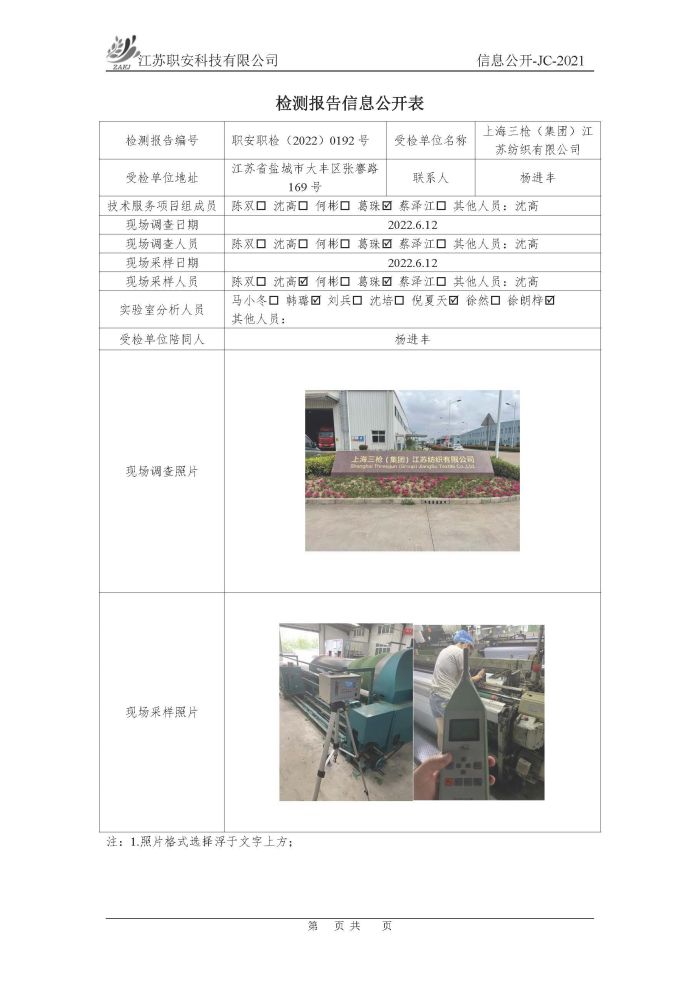 檢測報告公示