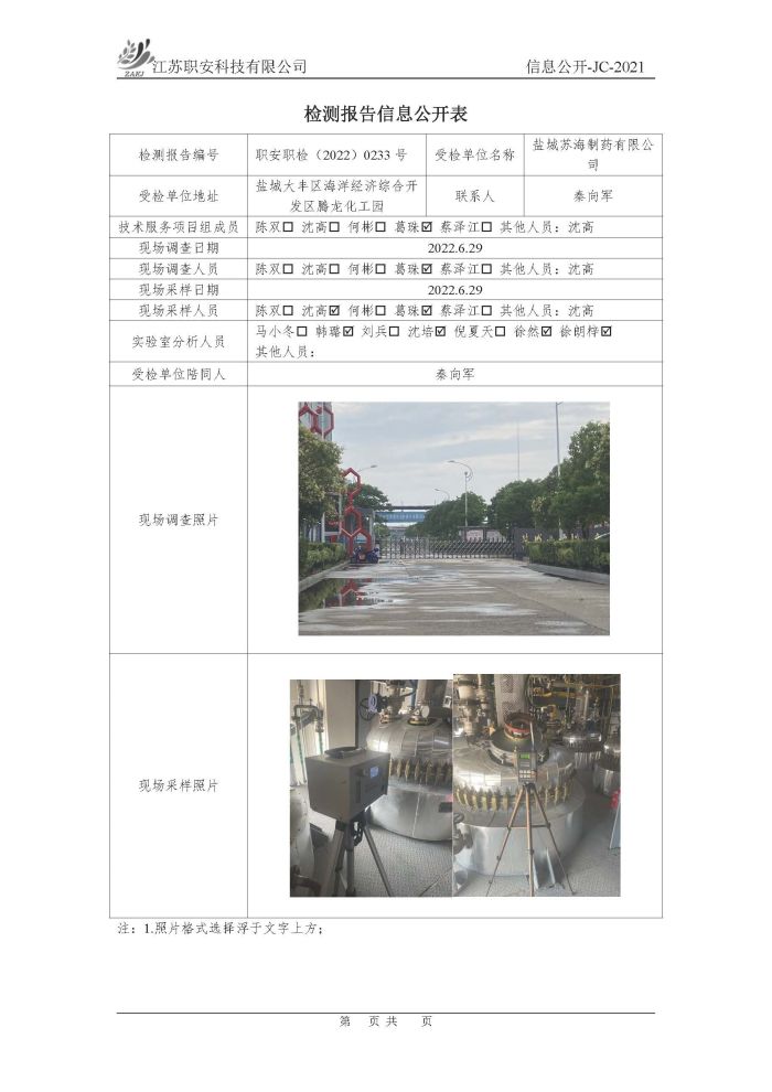 檢測報告公示