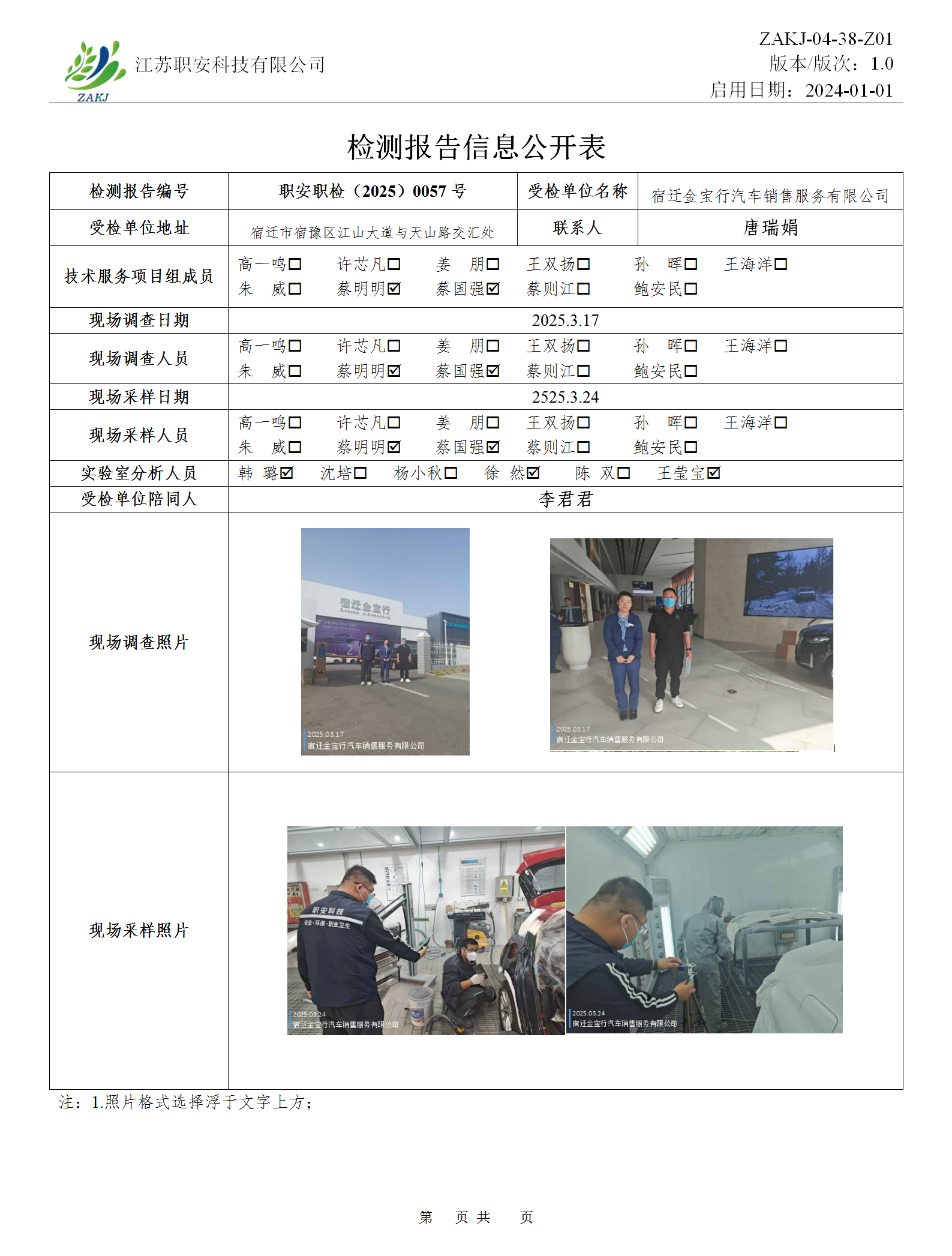 檢測報告公示