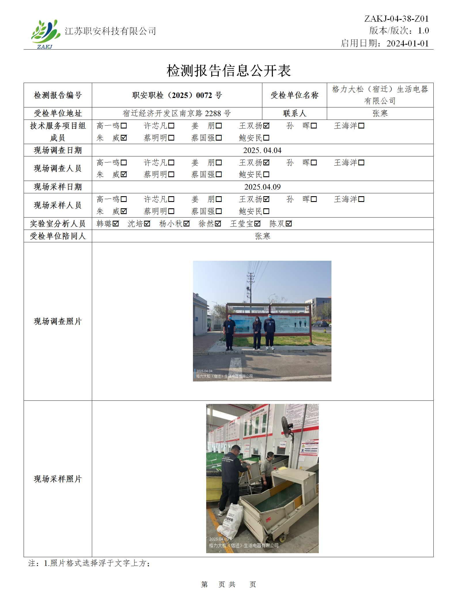 檢測(cè)報(bào)告公示