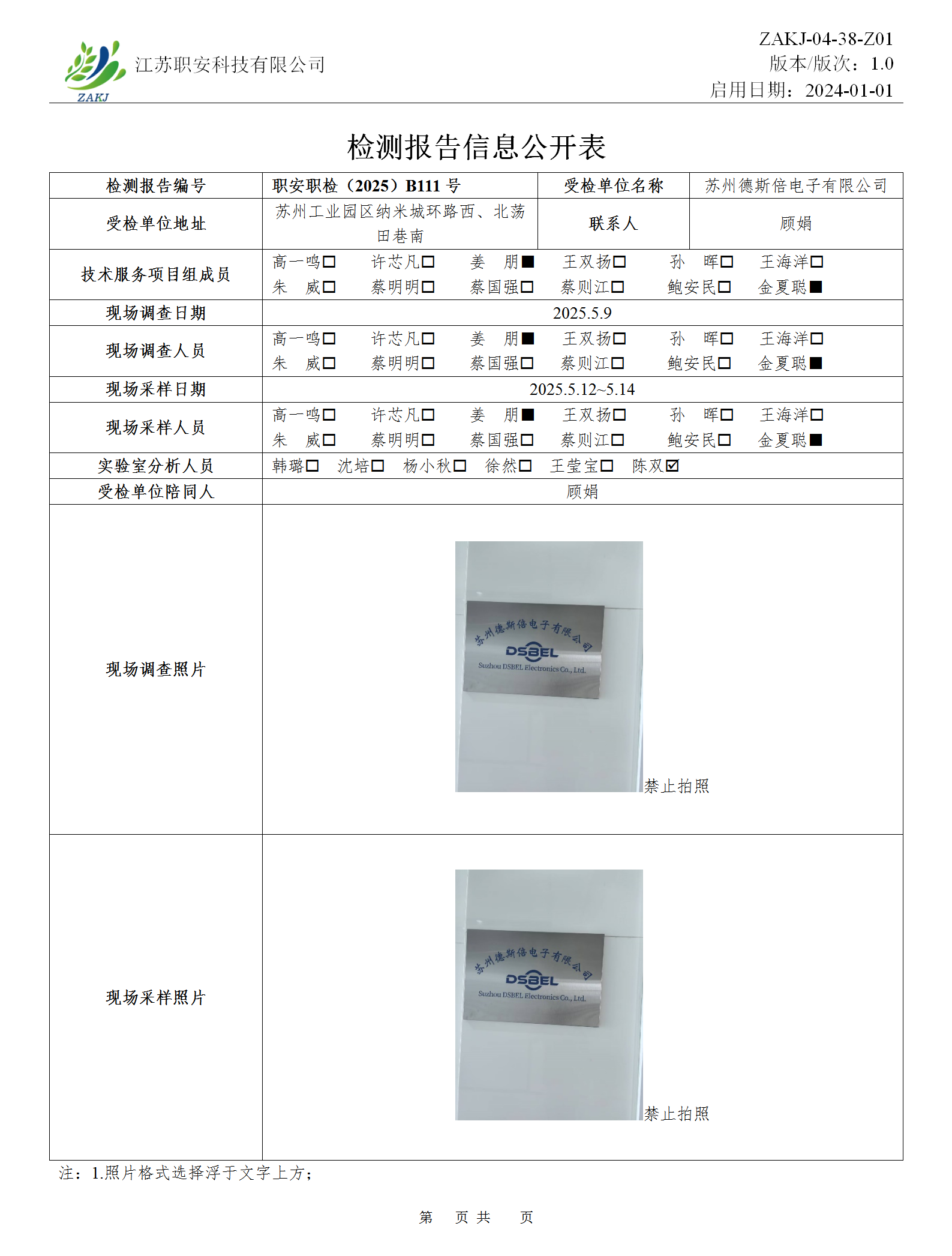檢測報告公示